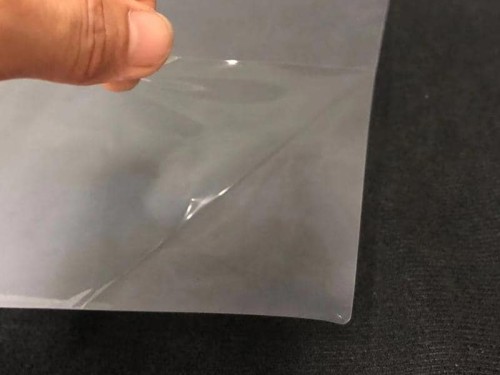 產品形態:薄膜+PE,表面為霧面,熱貼合后呈透明的狀態。